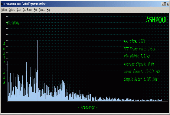![]() Naturally enough, summing the FFTs that went to make up this image gives an extremely strong signal; having scaled the spike height to stay on-screen, the noise is completely suppressed.