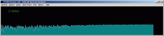 FFT analysisIf the streak was caused by an insect, its wing beat should show up as a slight periodicty in the pixel strips immediately adjacent to the trail (the 'wings' being apparent above and below the object at right in the above images). Because the shutter speed is 1/20th second and insect wings beat between 50Hz and 2KHz, there would be betteen 2.5 and 100 wing beats along the trail. In practice, as the insect can't be that small (else it would be completely out of focus) and appears to be fly or bee-like, a reasonable estimate would be 100 to 200Hz. To attempt to detect this periodicity, an FFT was run along the image trail and the results graphed as shown below.